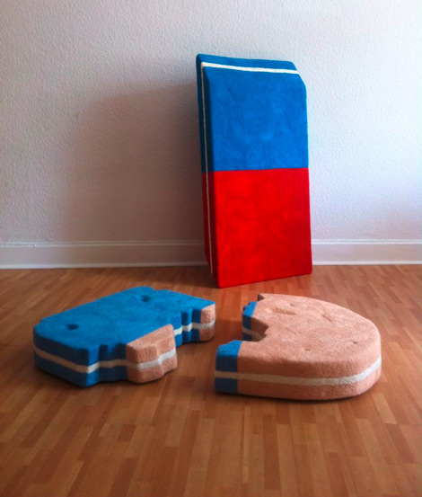 2 Radiergummis, 2015, je 100/50/10 cm, Wolle, Styropor
