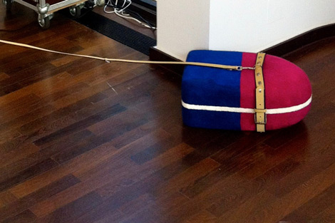 Ohne Titel (Radierdackel), 2016, 50/35/20 cm, Styropor, Wolle, Hundegeschirr